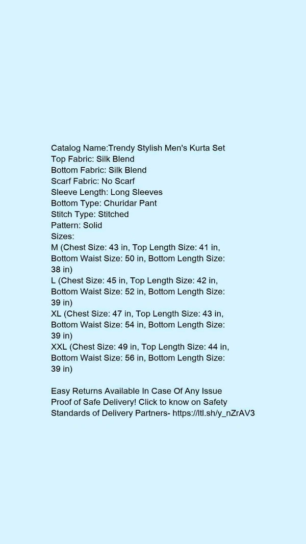 Catalog Name:*Trendy Stylish Men's Kurta Set*