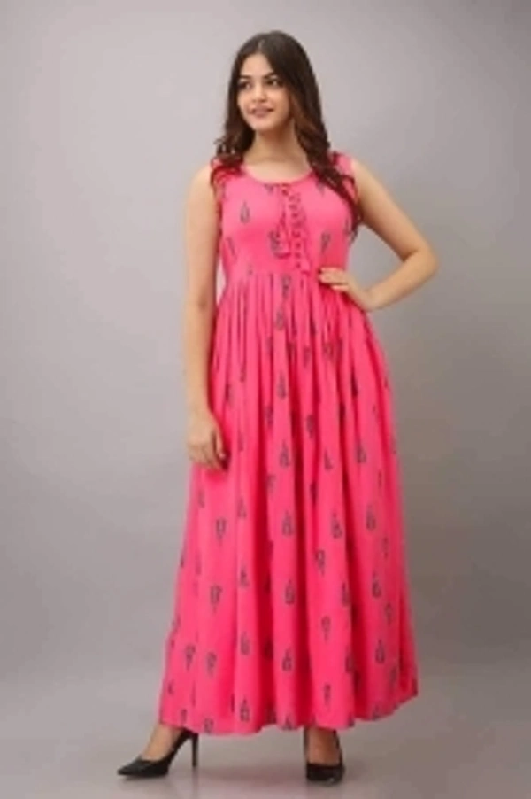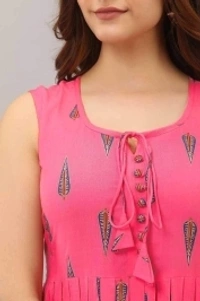KGN Women Printed Anarkali Kurta Size: S, M, L, XL, XXL, 3XL Fabric: Rayon, Pure Cotton Occasion: Casual Pattern: Printed Color: Pink Sleeve Length: Sleeveless Style: Anarkali Sleeve Style: No Sleeves Ornamentation Type: Patch Work 14 Days Return Policy, No questions asked.